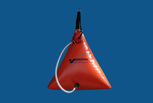 Air Transport Tanks can be carried by helicopters to transport liquids to remote areas. When empty, the unit collapses vertically to a fraction of its filled size. Each tank has a total of three polyester webbing lifting straps attached to an appropriate screw pin shackle(s) with swivel, for a single lifting point.