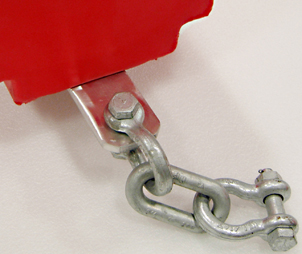 The core axle for each section of the Cat-Boom™ is reinforced and ballasted using high strength steel channel running through the full length of the bottom interior of each sealed shell through which inter-float connecting hardware is attached. External float connections are provided by 5/8" (16mm) thick galvanised steel bottom plates bolted to the internal steel channel and joined to adjacent floats with load rated galvanised 3/4" (19mm) bolt style steel shackles with stainless steel cotter pins at each end. Load rated 3/4" (19mm) galvanised steel weldless end links (or alternatively 3/4" (19mm) galvanized dock fender chain) complete the connection between the shackles. The shell for each float section of Cat-Boom™ Barrier is filled with extruded closed cell polystyrene foam to ensure the float maintains buoyancy should it be punctured or damaged structurally.