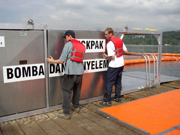 DeckPak is a self-contained Zooom Boom deployment system designed for rapid response and fastest delivery to incident site using any vessel of opportunity. Zooom Boom will self deploy from moving vessel or be pulled from DeckPak located on beach, truck or jetty. DeckPak can also be helicopter lifted to remote areas for immediate deployment. It provides the safest boom deployment, requiring 2 personnel and no external aid.