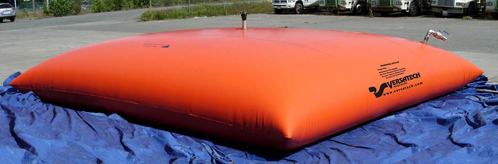 Versatech stationery bladder tanks are “pillow” shaped tanks having a low profile. Petroleum products, drinking water, industrial chemicals, wastewater, liquid food products, and a wide variety of other liquid products can be safely and efficiently stored in the Versatech Pillow Tanks.