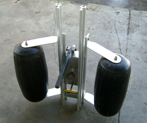 An over center handle at the top of the connector releases the connector from the hull and a flotation buoy prevents loss during handling.