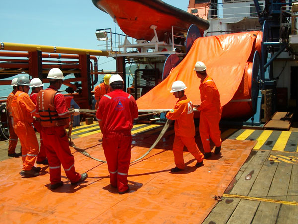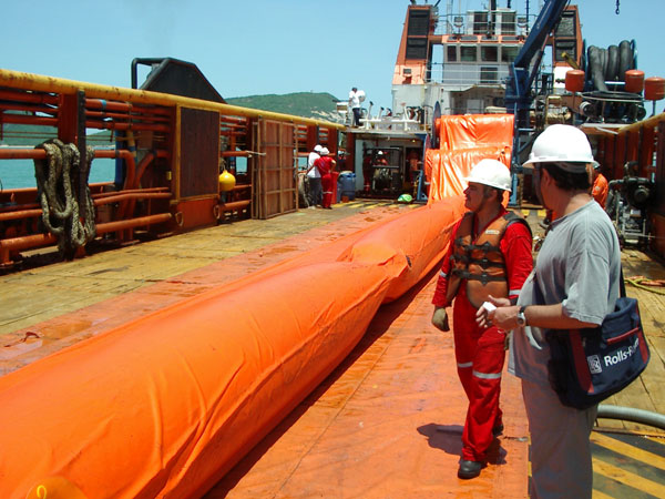 Offshore Boom is an air-inflated boom that is well suited to the harsh conditions faced in open ocean spills. Large independent air bladders within individual buoyancy chambers are quickly inflated through Monsun inflation/deflation valves using back-mounted blower packs.